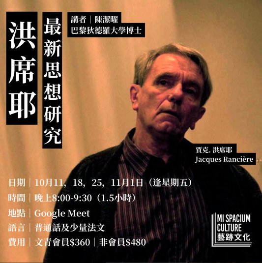 名列法國當今最知名也最爭議的哲學家-洪席耶(Jacques Rancière),五十年來,思想如何從政治哲學轉向藝術美學?二十一世紀以來,洪席耶批判羅蘭·巴特(Roland Barthes)理論,如何震攝法國學界?隨著其新書《離自由這樣遠—論契訶夫》(Au loin la liberté : Essai sur Tchekhov)於2024年九月出版,本講座將爬梳其重要概念的生成、演變,並於中文世界,第一時間解讀其最新著作。